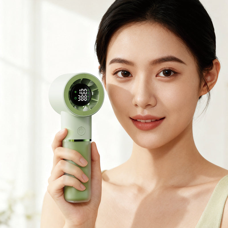 3. Multi-Scenario Use: Handheld / lanyard hanging / desktop use; stands upright instantly as a desk fan.