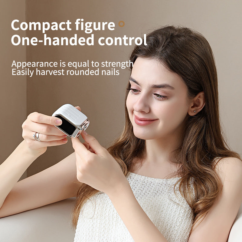 Oriday 스마트 네일 그루밍 기기 - 자르기와 갈기가 하나로, 3단계 선택 가능, 한 손으로 쉽게 조작 | 네일 먼지 수납함 디자인, 깨끗하고 위생적, 저소음 디자인 | Type-C 충전, 90분 지속 가능한 배터리.
