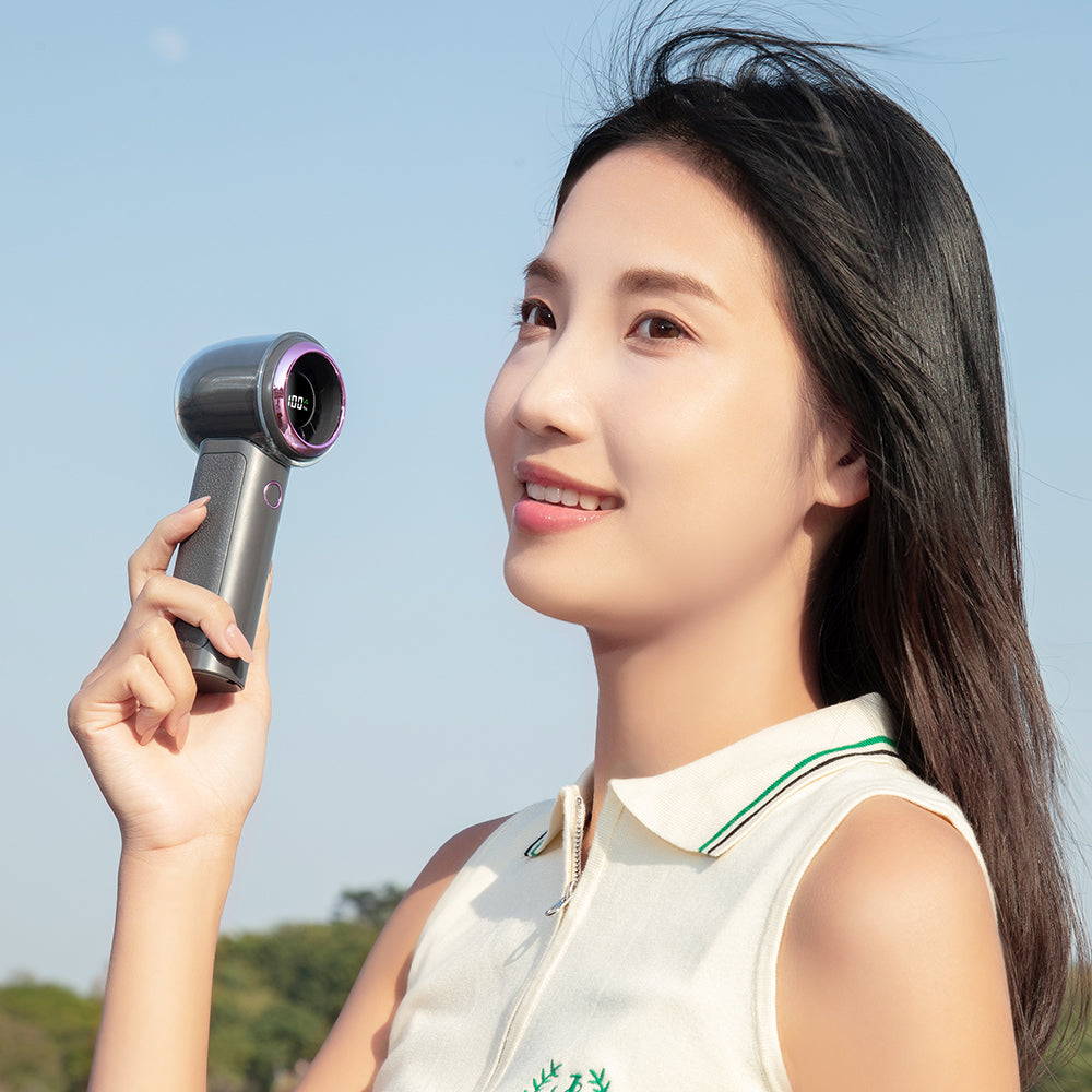 신형 고속 디지털 디스플레이 휴대용 야외용 손 선풍기, 강력한 바람, 100단계 무단계 풍속 조절, 긴 배터리 수명의 휴대용 선풍기, 야외, 가정, 침실, 사무실, 데스크탑, 학생 기숙사에 적합합니다