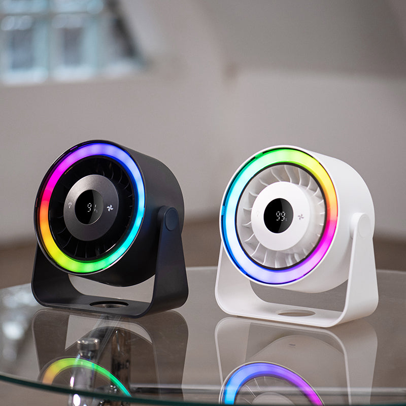 Oriday桌面壁掛兩用風扇 大容量電池長續航 5 檔靜音強風 三種燈光模式可調 角度可調自動搖頭 逆時針旋轉風罩易清潔 家居辦公兩相宜